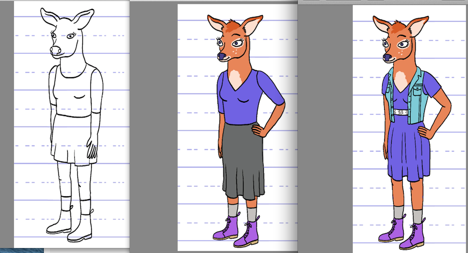 Lisa: When Raphael first came to me with this idea, he had taken my drawings and shown them with his first pitch. He was trying to think of ideas for the show, he was thinking about doing an animal character, and he was looking at my drawings, and something about this horse character just spoke to him.