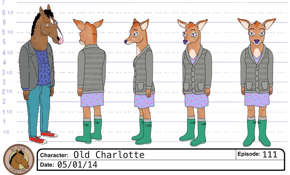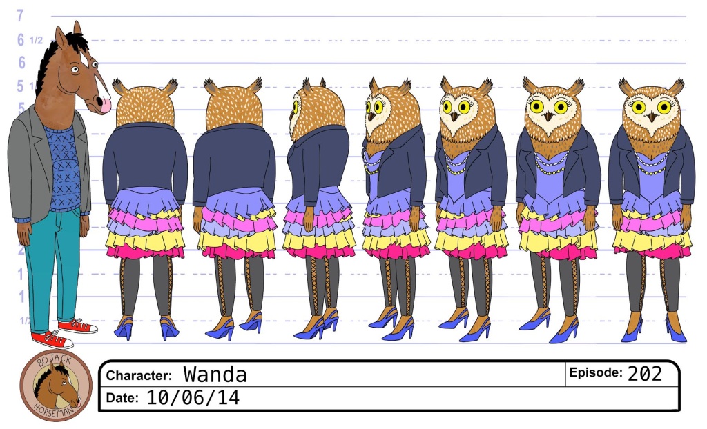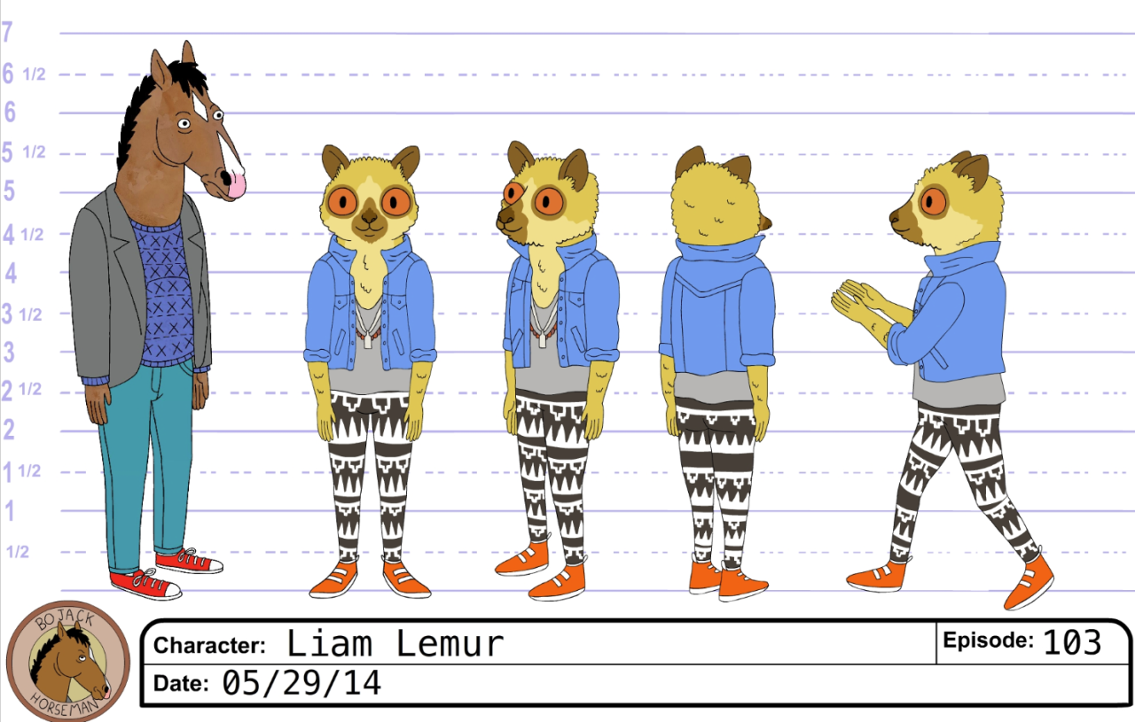I came on at the very end of that development and made notes, and art directed it. I quickly whipped up the design for BoJack’s swimming trunks.