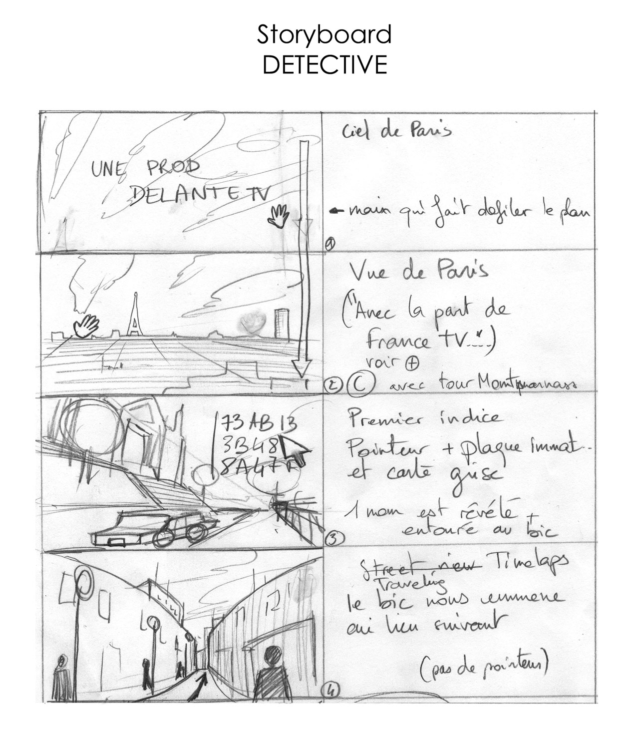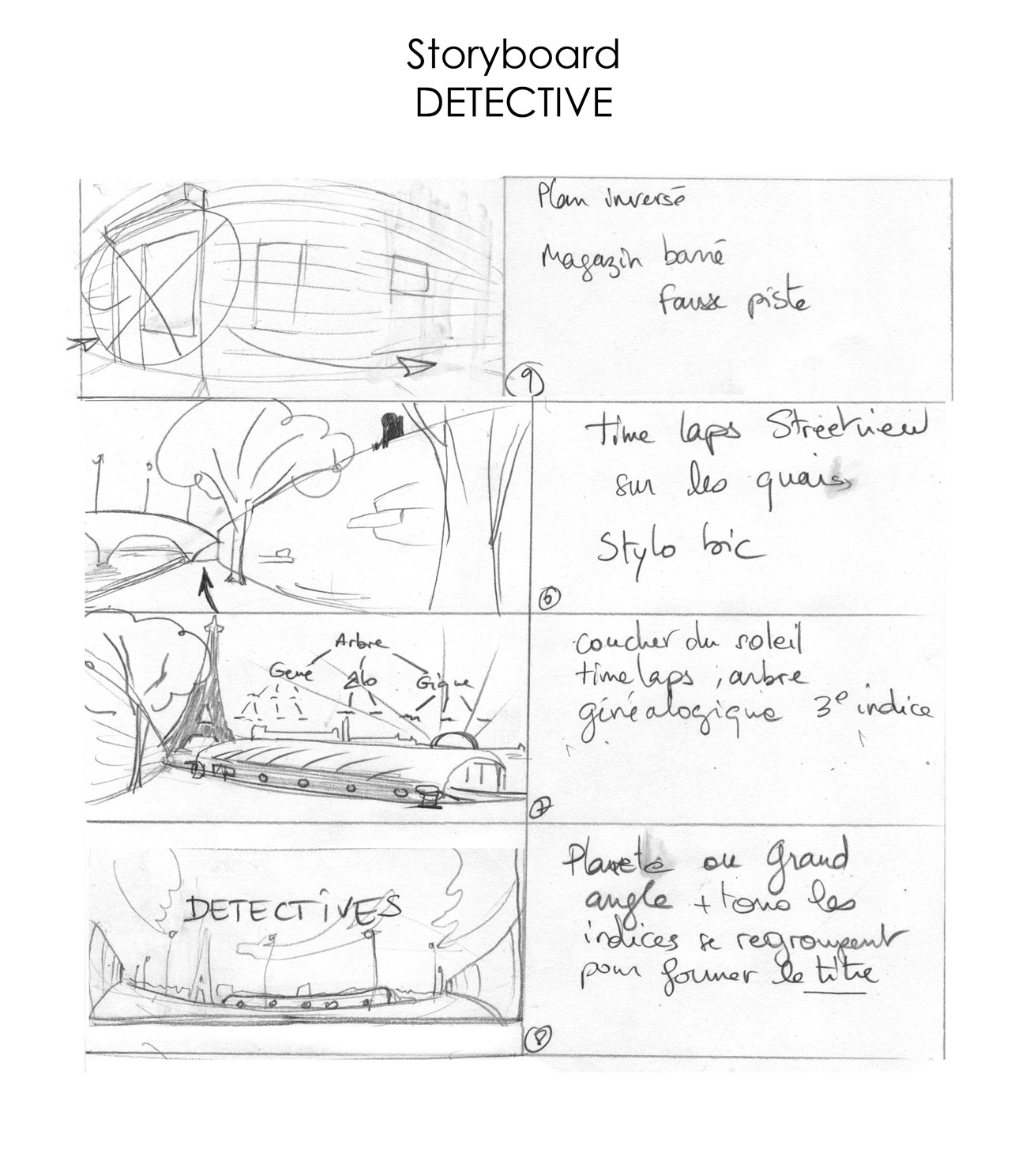 After researching and scouting potential shooting locations in Paris, we came up with our storyboards and first designs.