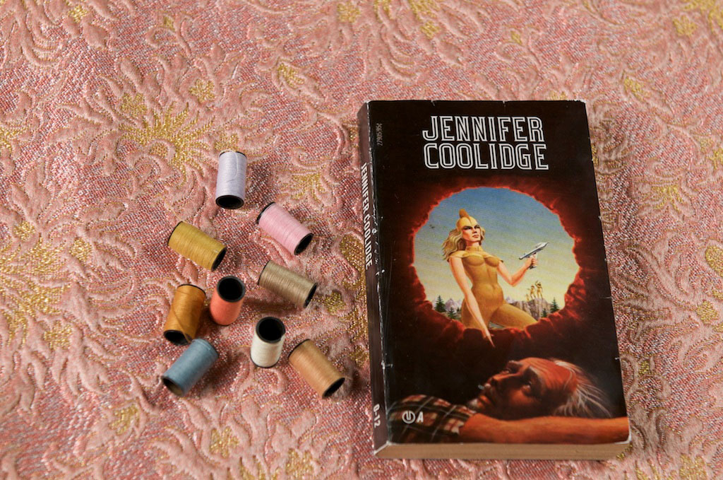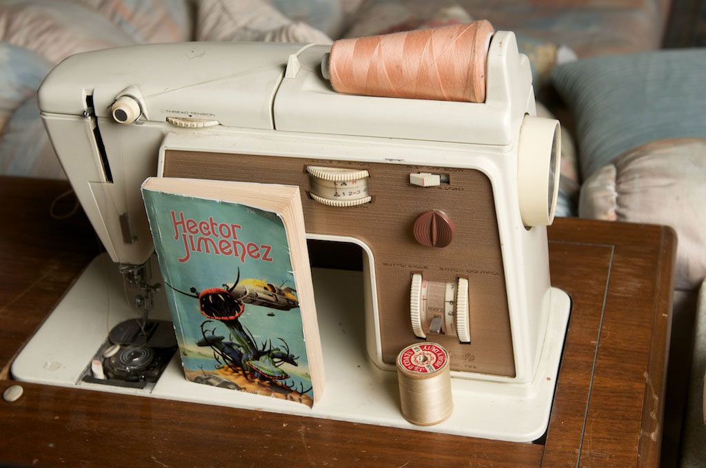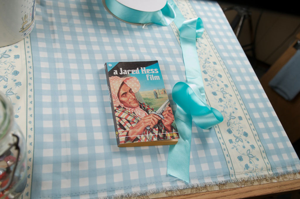 It seemed appropriate to film the books in Benjamin Purvis' house. It was a nice way to introduce the viewer to the bizarre contrast of Judith's pastel, crafty, wholesome home and Ben's uncomfortably weird sci-fi imagination that was nurtured within it. And the music just hit the nail on the head. It's a catchy tune with a dated sound about the far-out future. The lyrics are pretty amazing: "Magic pills and judgment day"... Benjamin could have written them himself.
