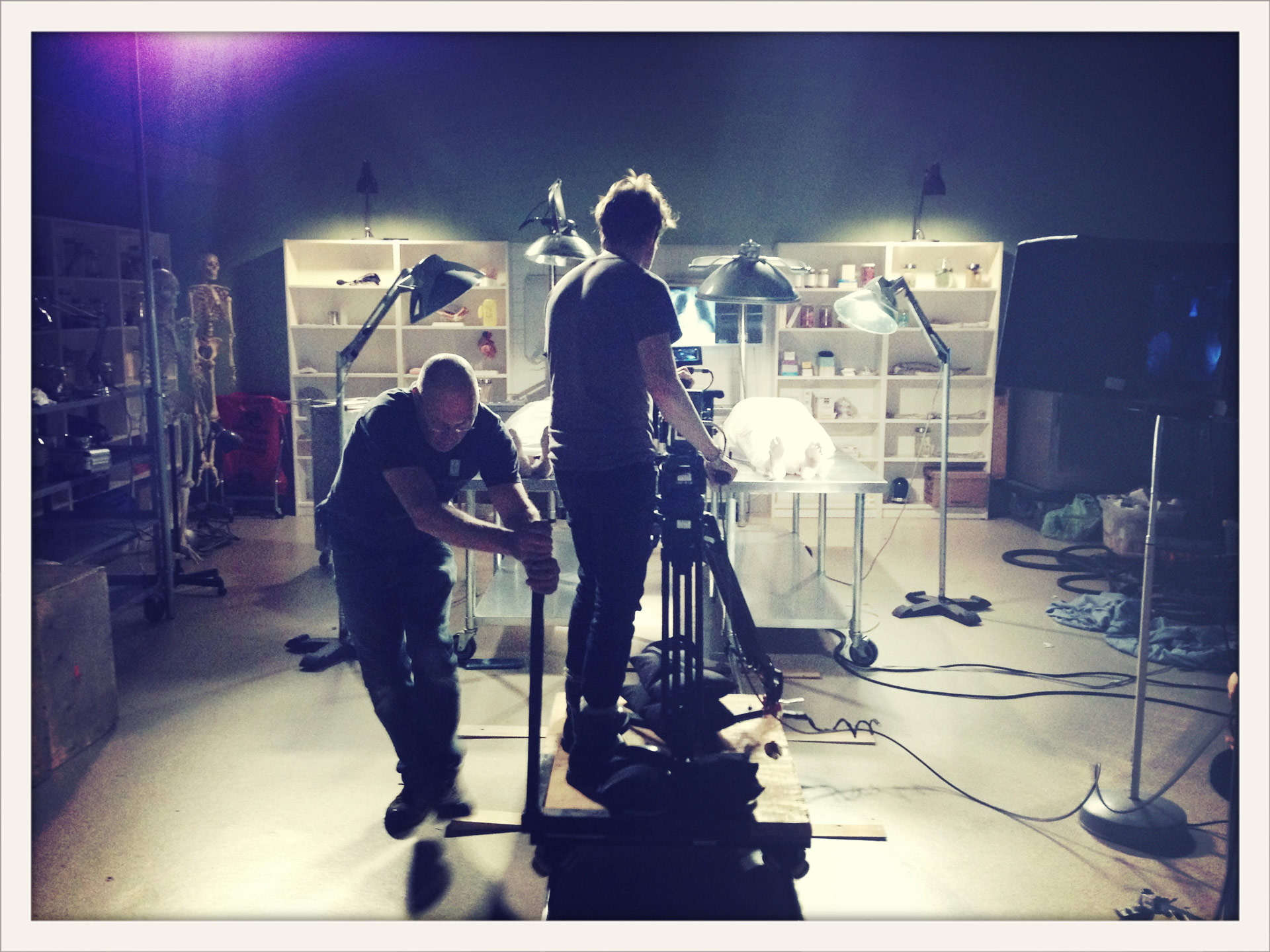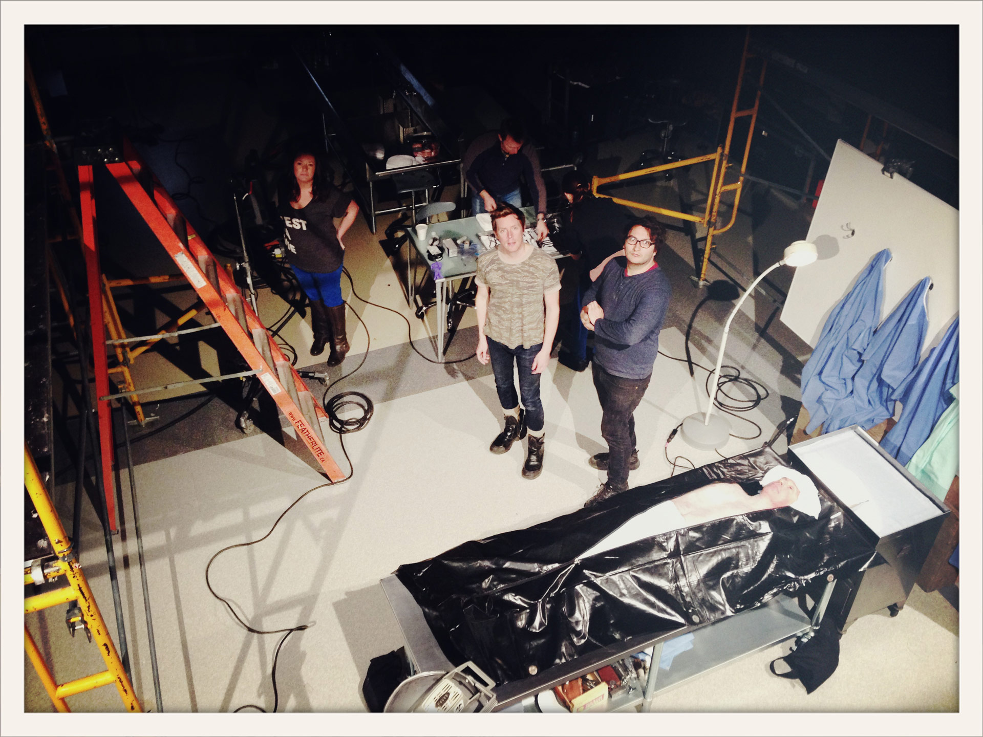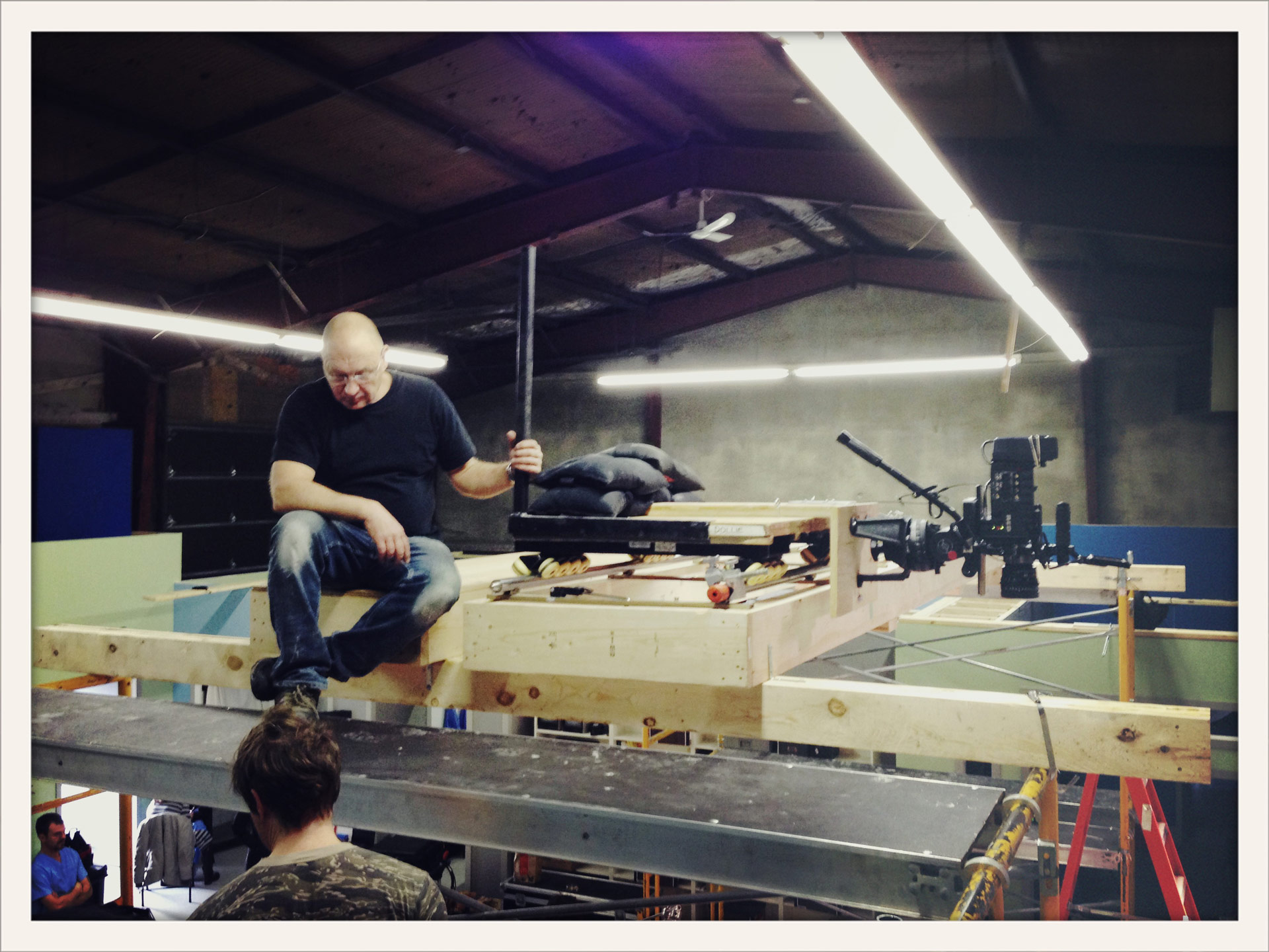 Another budget challenge came about in trying to get several quite specific straight-down shots. Canadian dramas are not usually in the same budget league as, say, American cable shows. So the challenge becomes conceptual, too. You have to work with what you have and if you really care about the piece, you go the extra distance to make it happen. It wasn’t within our budget to get a jib for a day and even if it was, I don’t know that we could have gotten the shots we did. James and the crew orchestrated some serious gripology and built an overhead, straight-down rig from scratch. Not only did it fit within the budget but it felt pretty amazing to build a crazy rig that works really well!