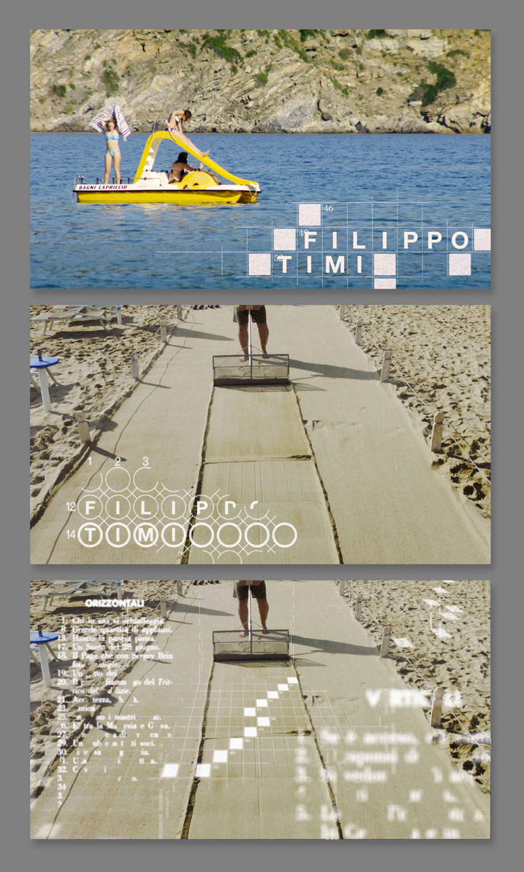 The series is set in a small town, a beach resort in Tuscany. A typical Italian custom is to bring crosswords, magazines, and the like to the beach, to spend time. This is exactly the essence behind the series: trying to solve puzzles and be amused at the same time. We immediately noticed how this analogy came so easily and how the graphics featured in these types of magazines were perfect. That was the idea!