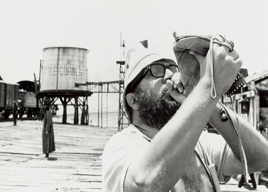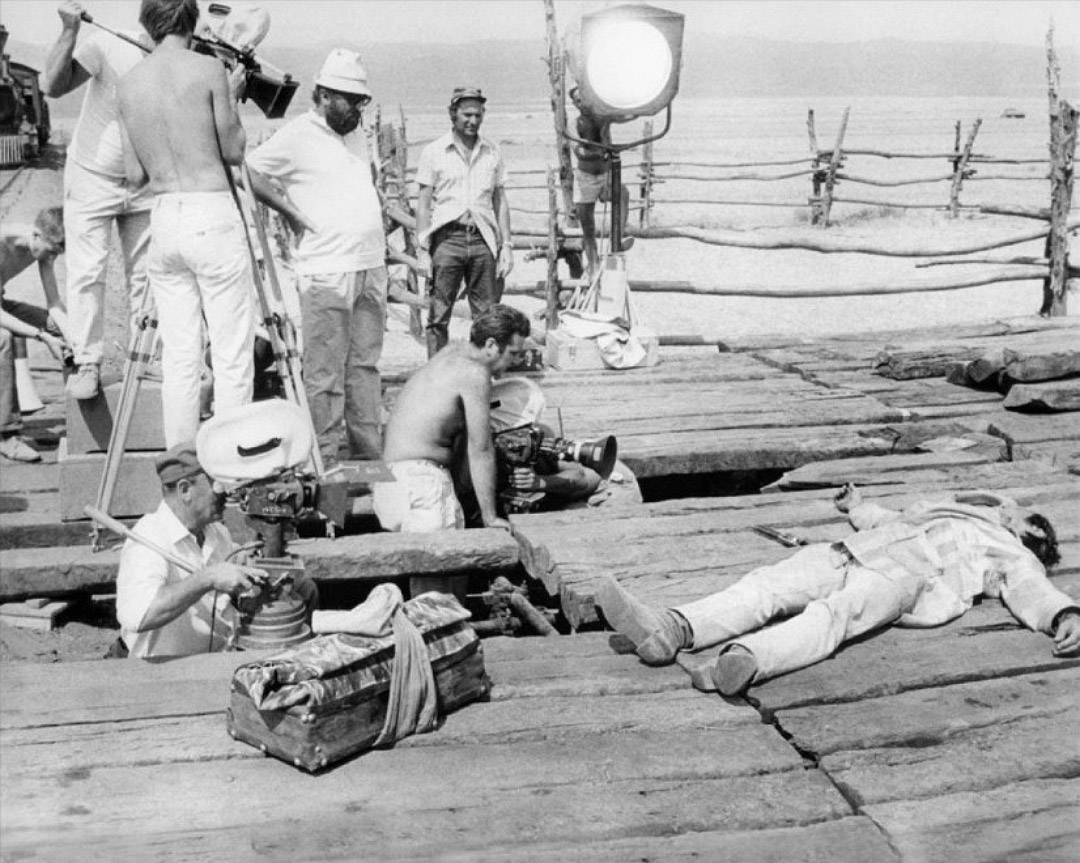 Image set: Director Sergio Leone and crew shooting the Once Upon a Time in the West opening in La Calahorra, Spain, 1968.