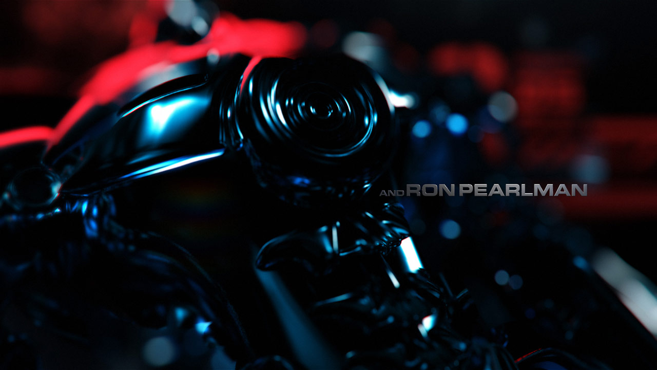 Some assets from the production were available to us to incorporate into our designs. We had ILM’s 3D high-poly models of the Jaegers and Kaijus as well as plenty of robot schematics and concept art. My first instinct was to create an aesthetic that would resemble a graphic novel which fused 3D and 2D elements. I took the ILM models into Cinema 4D and rim-lit them with softboxes and bounce cards to create a dark, monolithic look. I wanted epic moments as well as some macro shots which would leverage the rich complexity of the geometry. Once rendered, a bit of secondary color was infused along with some graphic elements to complete the frames. This look was influenced by several references that we had pulled together, including the title sequence for The Girl with the Dragon Tattoo (2011) as well as the frozen moments of Chez Eddy’s Silent Hill: Revelation 3D end title. This direction ultimately was chosen by Guillermo for the end titles.