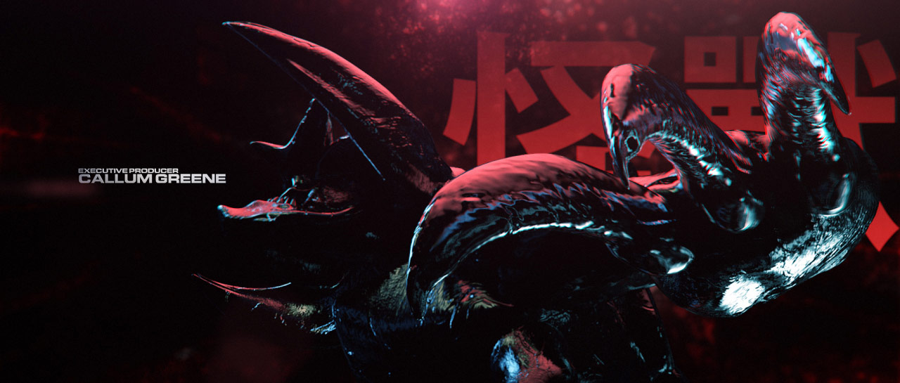 Other concepts included taking the 3D models and sketch-rendering them as if they were technical drawings. These were accompanied by line tracings of the schematics we received as well as a graphics toolkit designed by Jae Namkung, our intern. Additionally, we worked with My Tran, an illustrator who hand-crafted looks for a couple other directions; one imagined how Kaiju war propaganda posters would look while the other was an homage to manga.