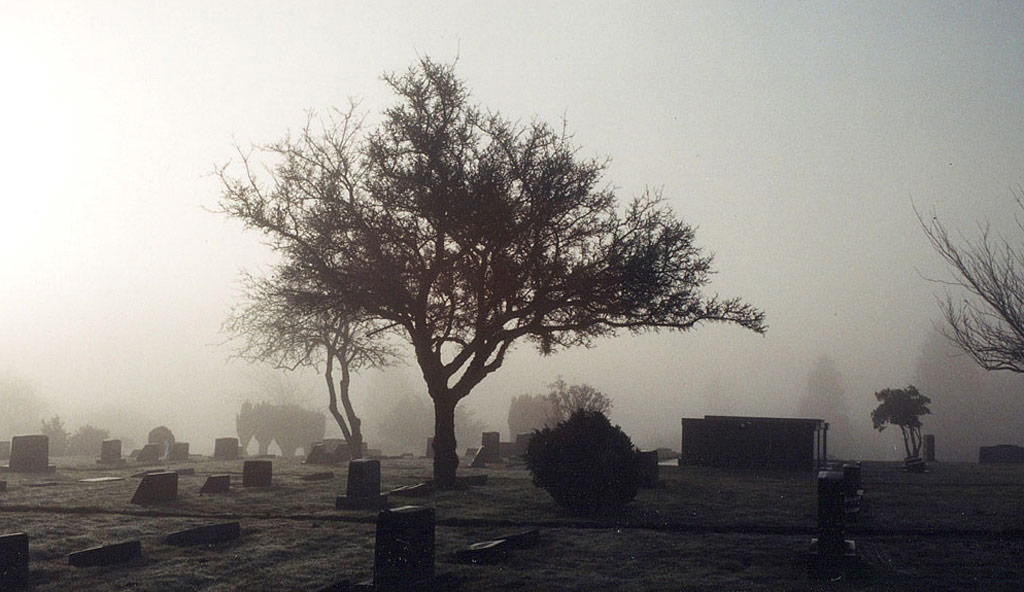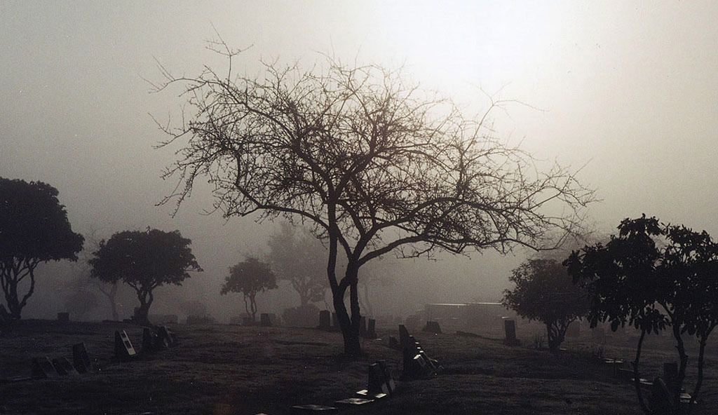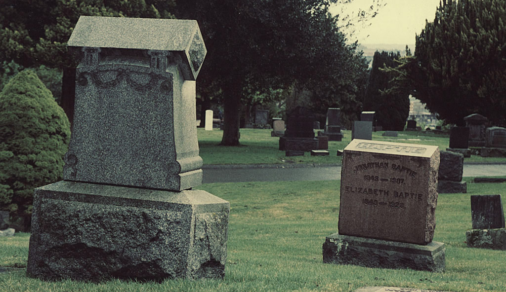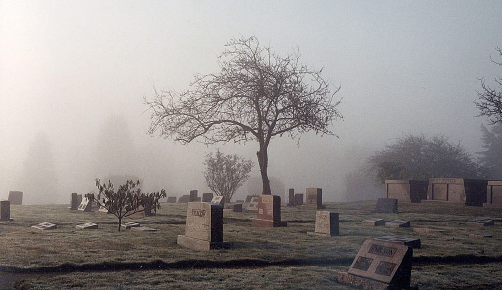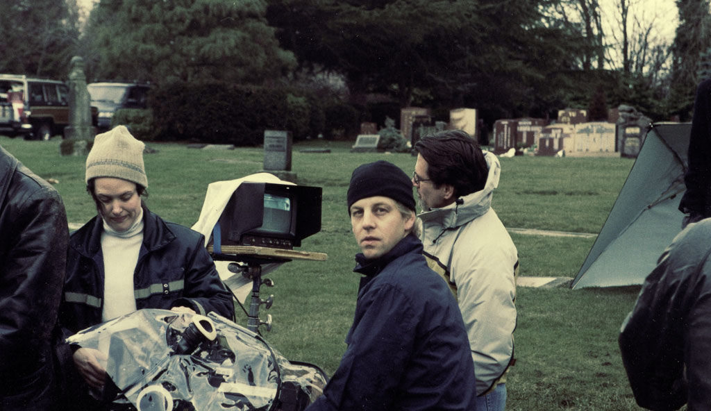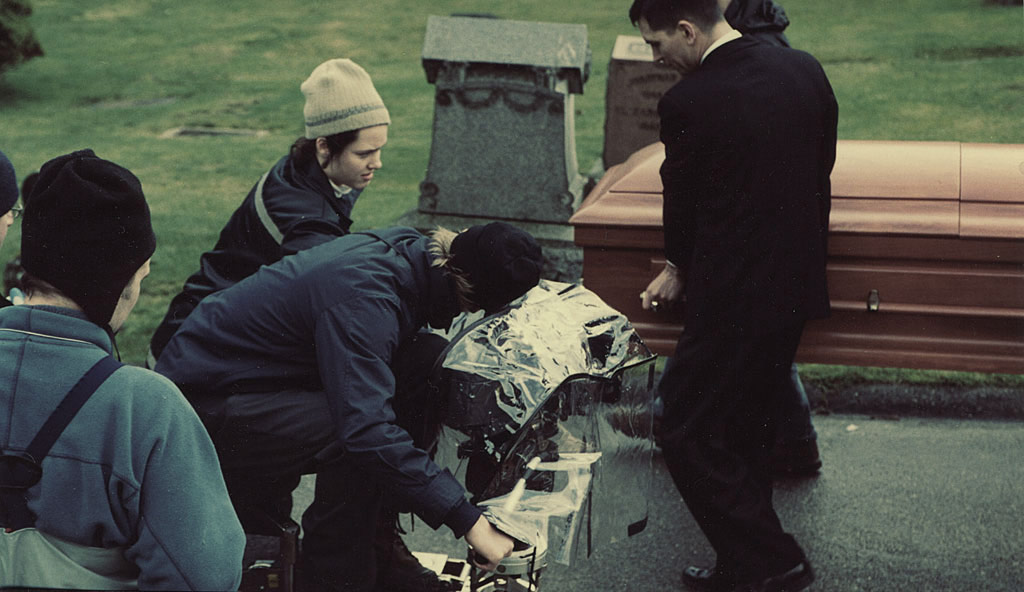 Producer Lane Jensen did some research and found a local DP, Christian Loubek, who had shot a nice piece involving beautiful tombstones at a cemetery in Seattle. We did two days of shooting in Seattle in the winter of 2002 at two locations on Capitol Hill: one at a park in Magnolia and one at a cemetery on Queen Anne Hill.