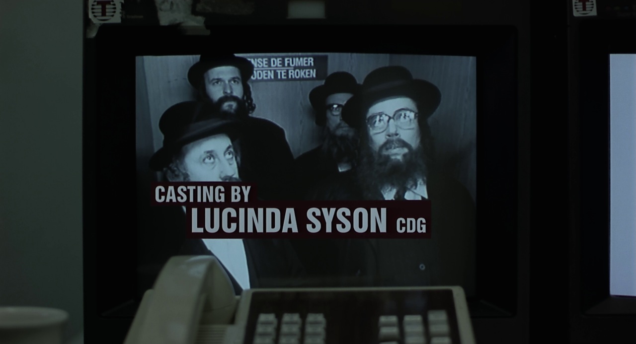 We wanted to have one rogue, made up title, where it would be out of focus like the image on the monitor. They really liked the idea of the out of focus 'fake' title but there were mysterious objections from somewhere. Pity, really! Was a fun idea. They added a couple of very last minute titles after we'd been off the job and used the wrong font – very annoying.