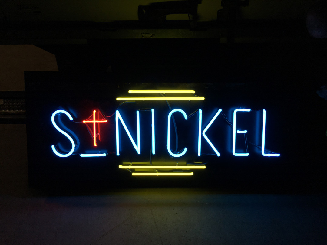 The St-Nickel neon sign as it appeared on location in Sudbury, Ontario.