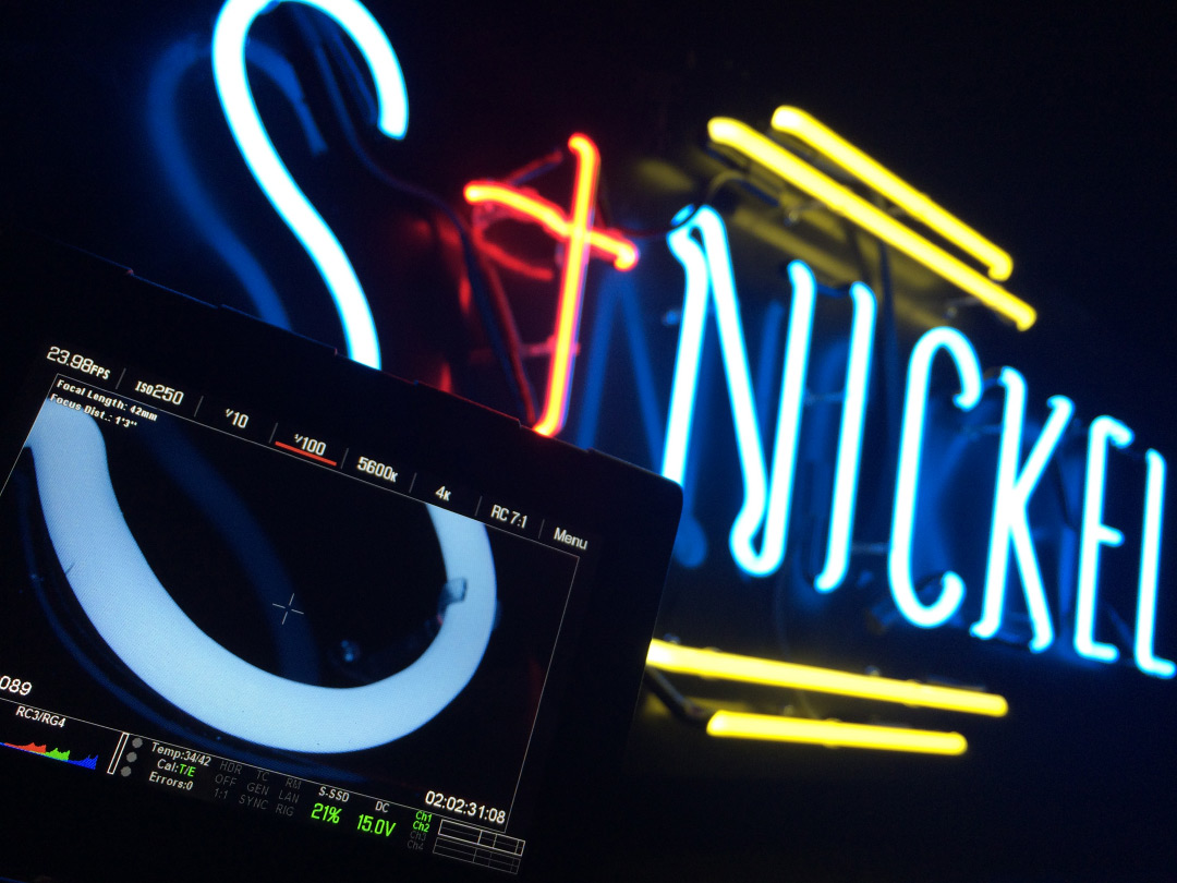 We got that real piece of glass neon and then ordered a piece of longer plastic tubing, kind of like an LED neon – it was pretty cool but it didn’t camera quite as well. It was good to have those practical components to take into the field. It worked and it didn’t. There’s only one shot of practical neon in the final piece. We shot all of it though.
