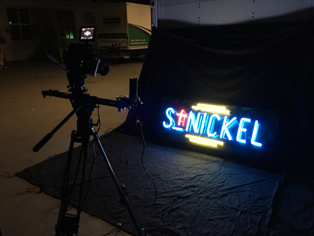 Shooting the L-shaped neon on-location in Sudbury