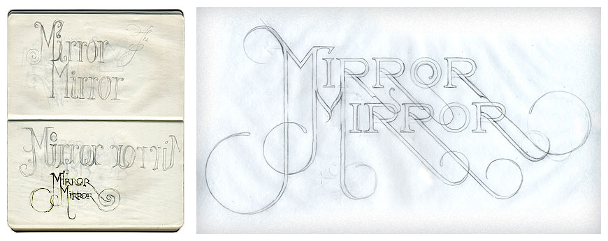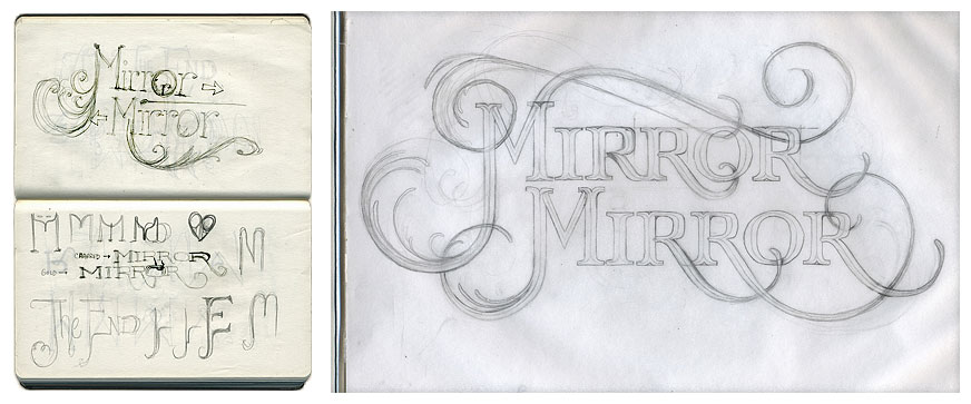 With Mirror Mirror, the type appears on black as the first thing you see after the production company logos. The type would appear without any prior visual context. I just had to set up a sumptuous fairy-tale feel. I tried a number of different approaches, but quickly fell in love with a swirly slab serif I'd constructed as a an homage to my late friend Doyald Young. Initially, Tarsem and Tom weren't convinced, but I'm grateful that they came around. Of all my projects, the Mirror Mirror type is the lettering I'm most proud of so far.