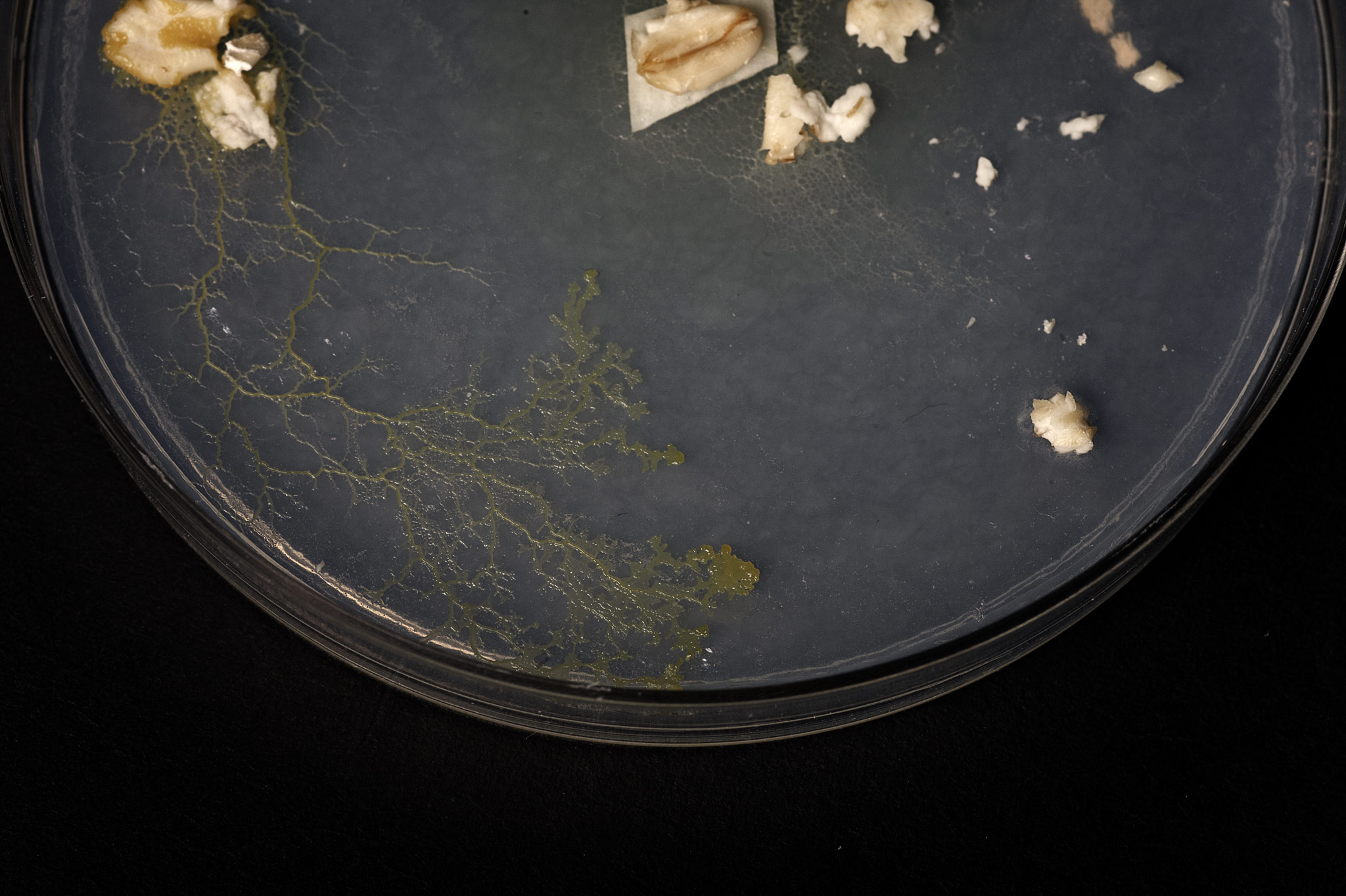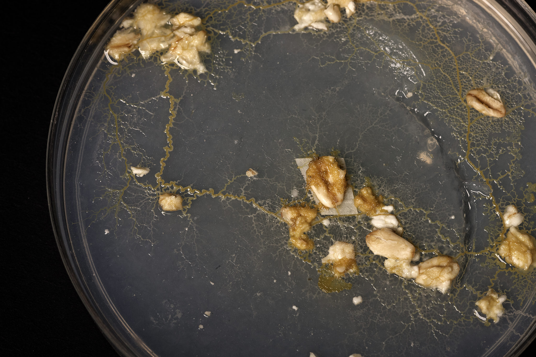 Slime moulds growth and timelapse shooting